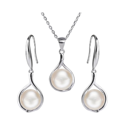 925 Sterling Silver Cubic Zirconia de água doce feminino pérolas cultivadas colar brincos conjunto para aniversário pérola da mãe